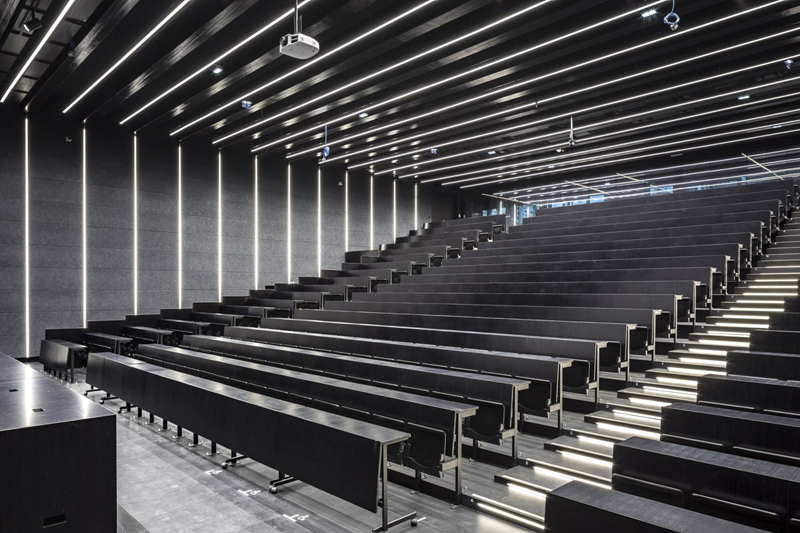 普通大學(xué)的報告廳在裝修上面就沒有那么講究,一切以簡單為主,可以試著走現(xiàn)代極簡路線,給人留下干凈整潔的印象是不錯的選擇,盡管如此仍需在施工技術(shù)上考慮廳內(nèi)的隔音及消音要求。